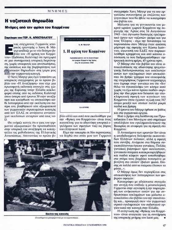 Η ωαζιστική φηριωδία: Γερ. Κ. Αποστολάτου Πολίτικα Θέματα, 13.11.1998